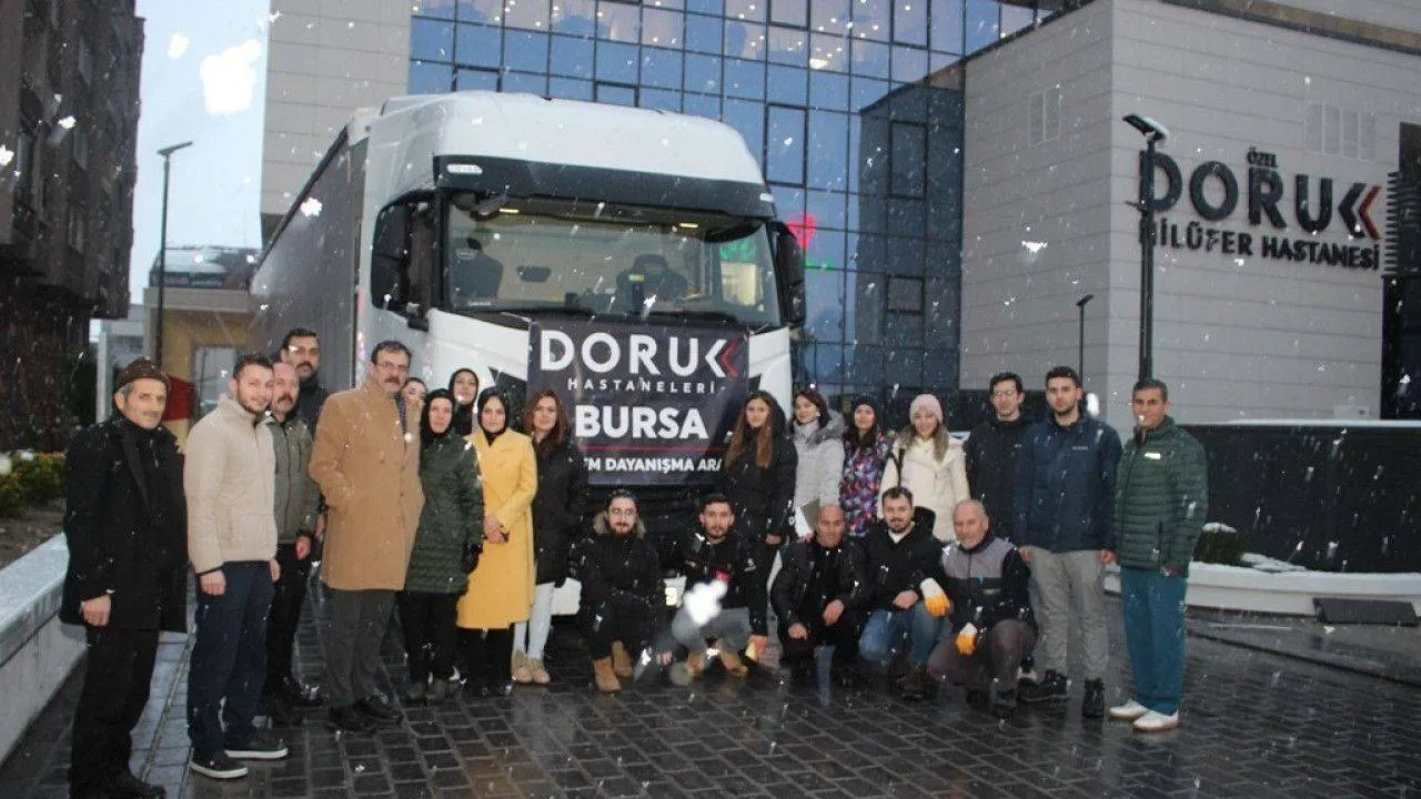 Doruk Nilüfer Hastanesi’nde toplanarak AFAD ve Kızılay ile koordineli bir şekilde Hatay Sahra Hastanesi’ne gönderilen sağlık malzemeleri arasında, serumlar, sarf malzemeleri ve çocuk bezleri ile değişik hastalıkların tedavisinde kullanılan ilaçların yanı sıra Hatay Sahra Hastanesi’nin elektrik ihtiyacını karşılayacak 57 kVA’lık bir jeneratör bulunuyor.