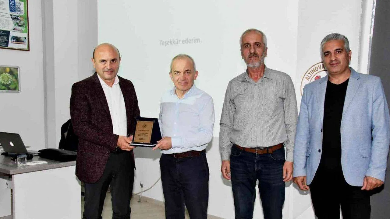 Programın sonunda Altınova Belediye Başkanı Dr. Metin Oral, Marmara Üniversitesi Sağlık Politikaları Anabilim Dalından Dr. Öğr. Üyesi Murat Dinçer Çekin’e teşekkür plaketi verdi.
