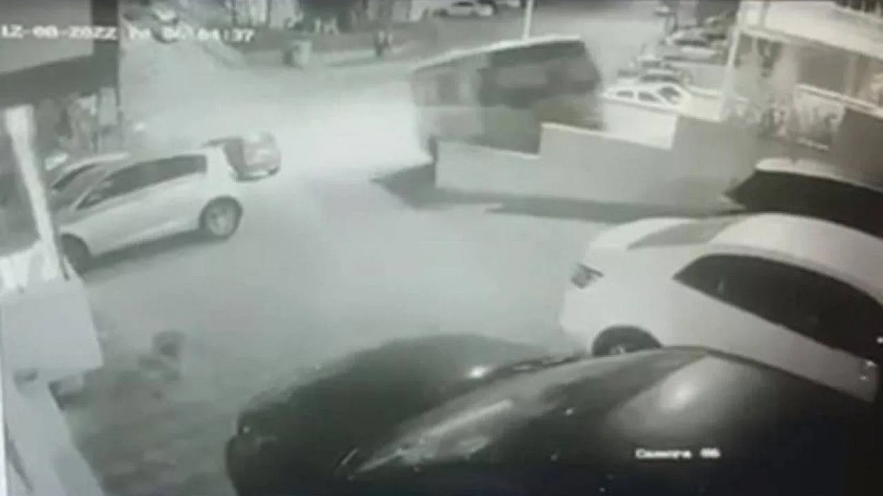 Ankara'da kontrolden çıkan yolcu minibüsü yol kenarındaki istinat duvarına çarptı. Çarpmanın etkisiyle minibüsün camından fırlayan sürücü yaralanırken, kaza anı güvenlik kameralarına yansıdı.
