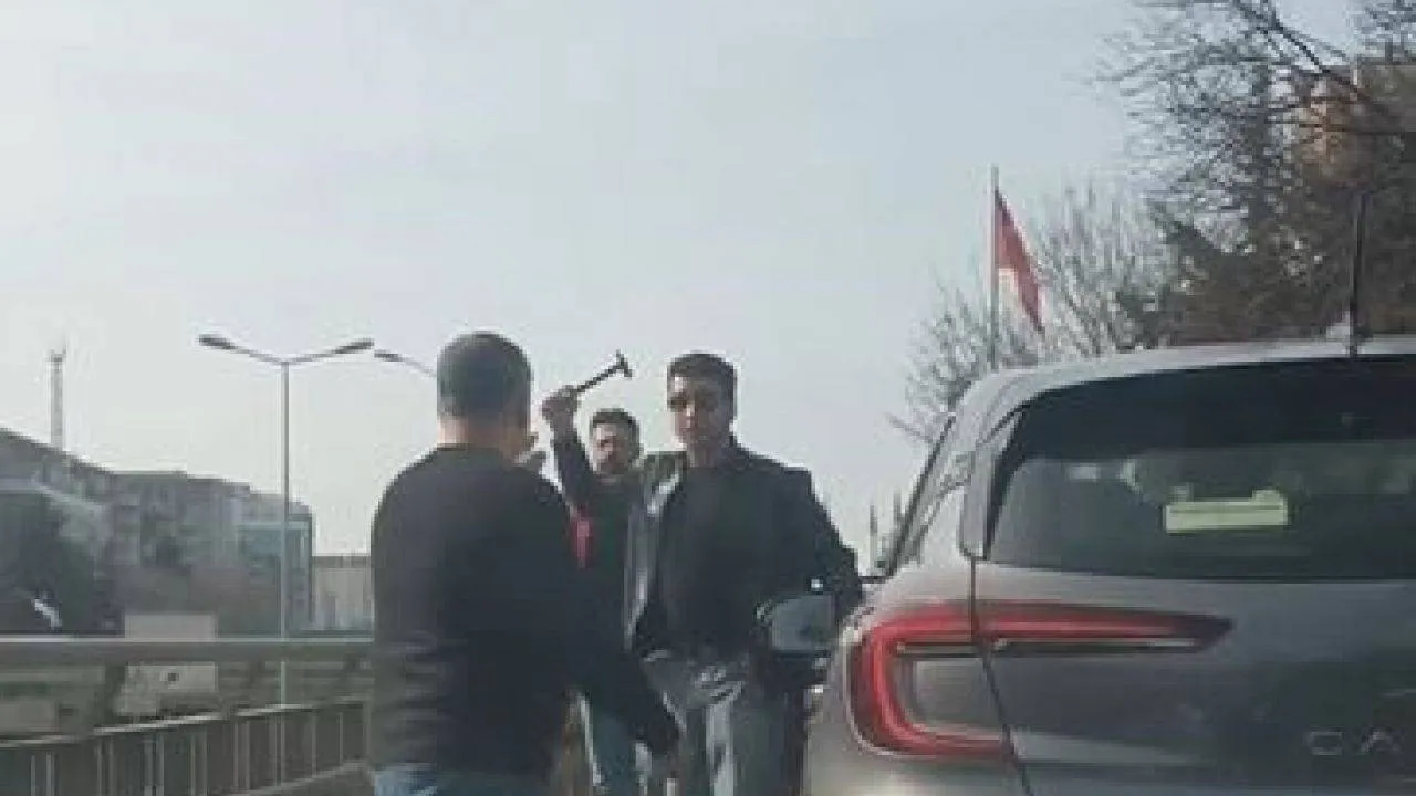Beylikdüzü E-5 Karayolu’nda iftar saatinde trafikte kalan sürücüler arasında bıçaklı çekiçli kavga çıktı. Kavga anı cep telefonu kamerasına yansıdı.