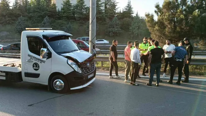 Kocaeli'nin Gebze ilçesinde E-5 üzerinde karşıdan karşıya geçmeye çalışan yayaya çekici çarptı. Metrelerce savrulan şahsın iki bacağı kırıldı.