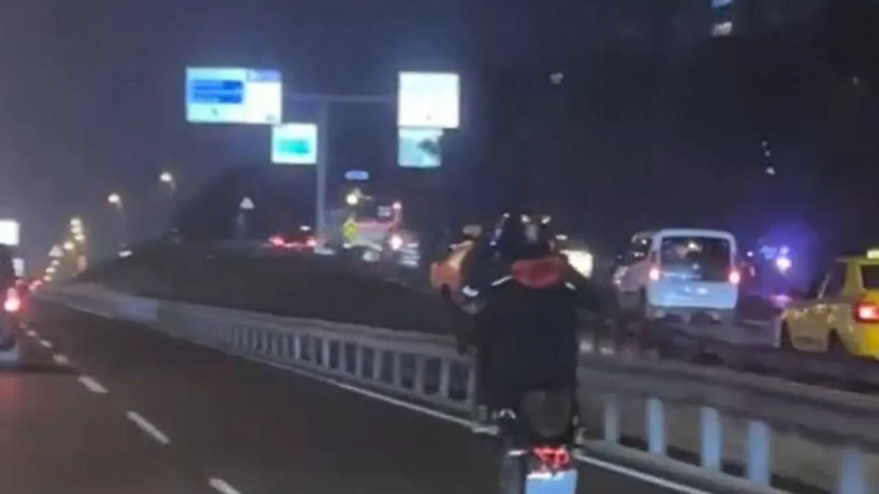 Edinilen bilgiye göre, İstanbul’da E-5 karayolunda gece saatlerinde plakasını kapatıp, tek tekerlek üzerinde yolculuk yapan motosikletli, hem kendi hem de diğer sürücülerin canını tehlikeye attı. Bir süre bu şekilde tehlikeli yolculuk yapan motosikletli, başka bir sürücünün cep telefonu kamerasına yansıdı.