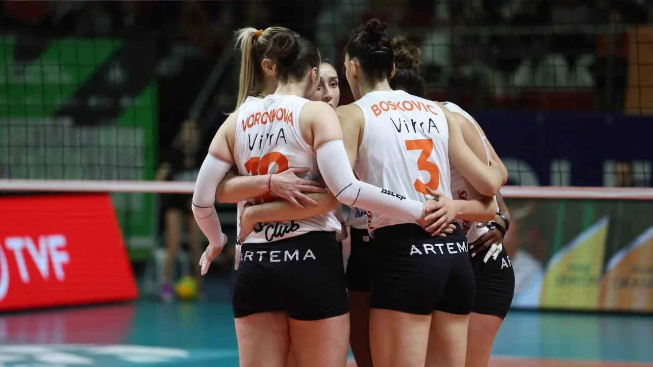 Eczacıbaşı Dynavit: Hande, Jack-Kısal, Elif, Voronkova, Stevanovic, Boskovic, Simge (L), Yaprak, Gray, Naz, Beyza