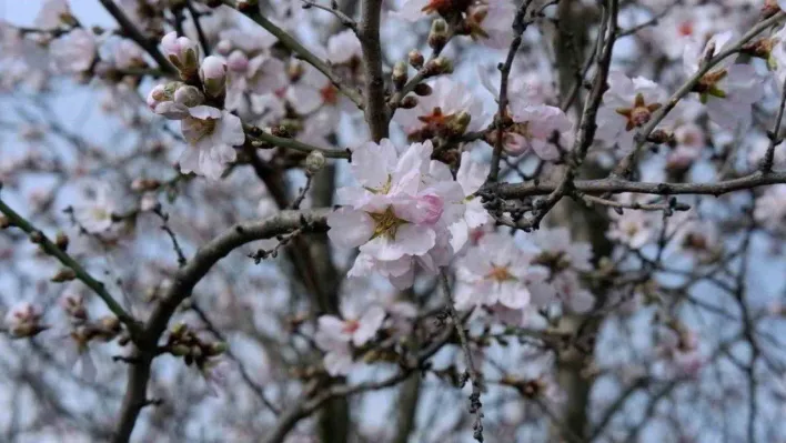 Hava sıcaklıklarının mevsim normallerinin üzerinde seyrettiği Edirne'de, badem ağaçları zamanından önce çiçek açtı.