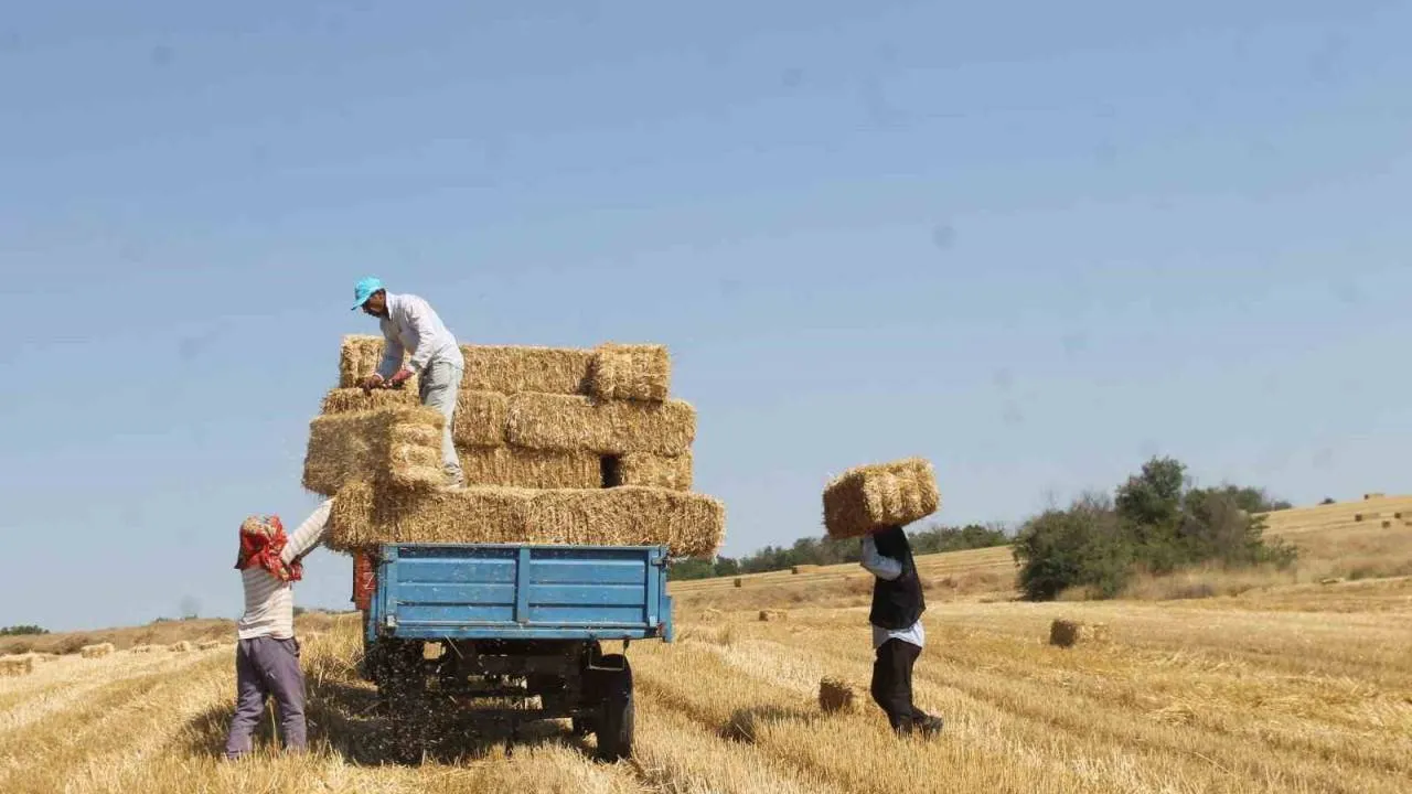 Edirne’de tarım işçilerinin kavurucu sıcaklar altında zorlu mesaisi sürüyor. Buğday tarlaları biçildikten sonra hayvancılıkta yem olarak kullanılan samanlar ilk olarak makineyle bağlanarak balyalar haline getiriliyor. Yaklaşık 25 kilogram ağırlığındaki saman balyaları daha sonra işçiler tarafından traktörlere ve tırlara yükleniyor.