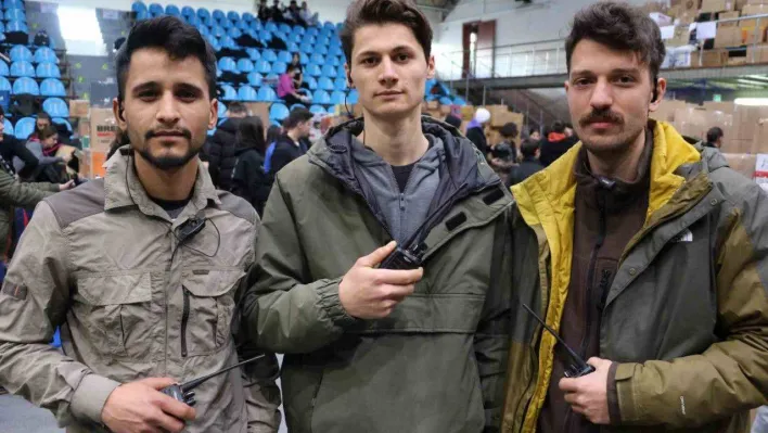 Spor salonuna yardıma gelen film ekibinden Salih Bölme, telsizler sayesinde hızlı bir şekilde iletişime geçip koordinasyon sağladıklarını ifade etti. Bölme, “Biz film ekibiyiz. Film ekibi çalışanları olarak telsizlerimizle daha donanımlı oluyoruz. Telsizlerimiz sayesinde tırlarda yükleme aşamasında istenilen malzeme ne ise hızlı bir iletişim sağlayarak söyleyebiliyoruz. Mesela birinci tırda ne kadar battaniye ihtiyacı var ise telsizler ile hızlı bir şekilde iletişime geçip koordinasyon sağlıyoruz. Film ekiplerine seslenmek istiyorum, film ekiplerinde olup boşta olan insanların lütfen telsizlerini takıp yardım merkezlerine gitmelerini canı gönülden istiyorum. İşi ne kadar hızlandırabilirsek o kadar iyi oluyor” ifadelerini kullandı.