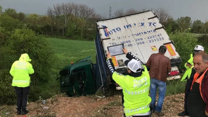 Hamzabeyli Sınır Kapısı'ndan Türkiye'ye giriş yapan Romanya plakalı tır, Lalapaşa-Edirne yolunda kontrolden çıkarak tarlaya uçtu.