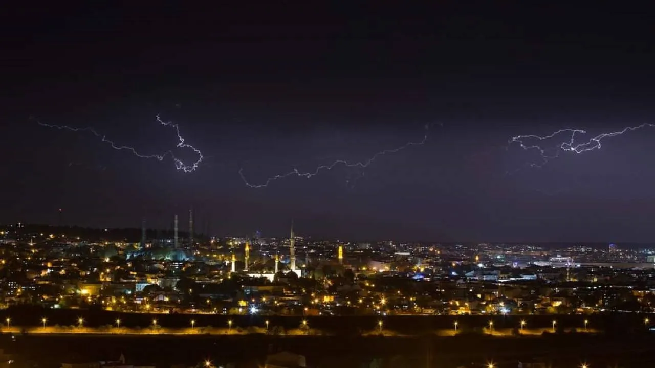 Edirne’de dün sabahtan itibaren etkili olan sağanak yağış günlük yaşamı olumsuz etkilerken, geceyi aydınlatan şimşekler görsel şölen oluşturdu. Şimşekler kartpostallık görüntüler ortaya çıkardı.