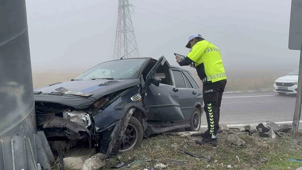 Kırklareli’nden Edirne’ye seyir halinde olan M.T.’nin kullandığı 22 AEA 263 plakalı otomobil, sis nedeniyle görüş mesafesinin azalması sonucu yön tabelasının direğine çarptı. Kazada otomobil sürücüsü yaralandı. İhbar üzerine olay yerine ambulans ve polis ekibi sevk edildi. Yaralı sürücü olay yerinde yapılan ilk müdahalenin ardından ambulansla hastaneye kaldırıldı.
