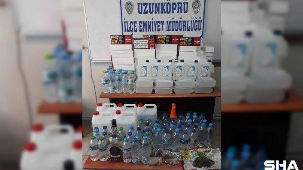 Edirne'nin Uzunköprü ilçesinde düzenlenen operasyonda gümrük kaçağı ve sahte 111 litre içki ele geçirildi.