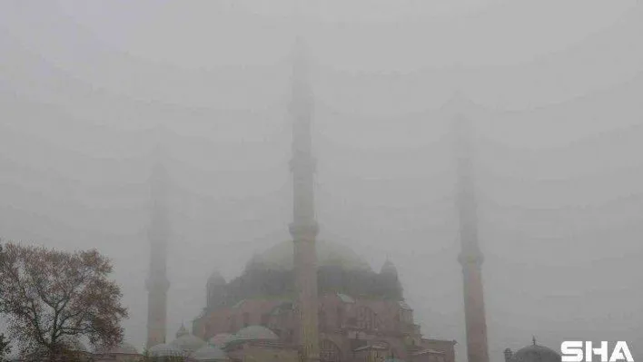 Edirne'de görüş mesafesinin yer yer 50 metreye kadar düştüğü kent merkezinde bulunan Mimar Sinan'ın ustalık eseri Selimiye Camii ve tarihi köprüler sisle kaplandı.