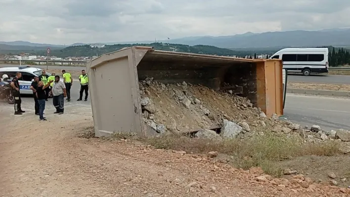 Kaza, Atatürk Mahallesi’nde meydana geldi. Hafriyat taşıyan E.T. idaresindeki 06 FK 6313 plakalı kamyon dönerken arka tekerinin su kanalına düşmesi sonucu devrildi. Şoför ise hafif yaralanırken, 112 Acil Yardım ekiplerinin ilk müdahalesinden sonra hastaneye kaldırıldı. Kazayla ilgili soruşturma sürüyor.