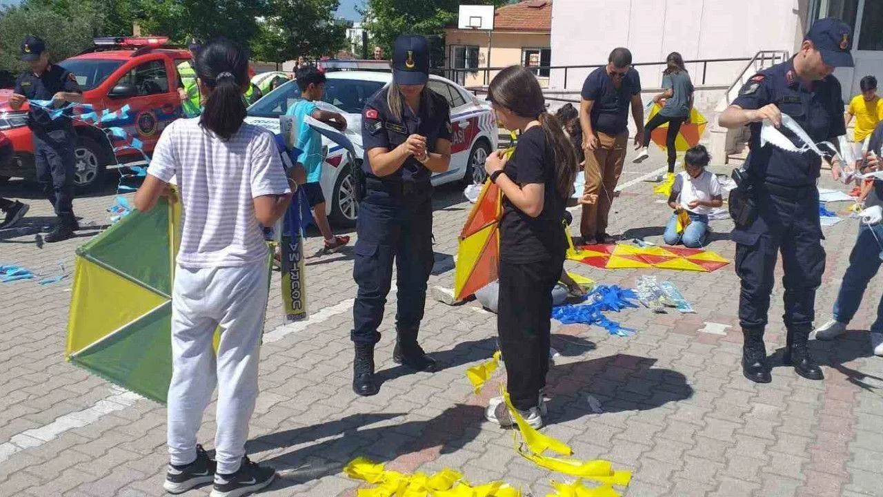 Edremit'te jandarma, 184. yılı çocuklarla uçurtma uçurarak kutladı