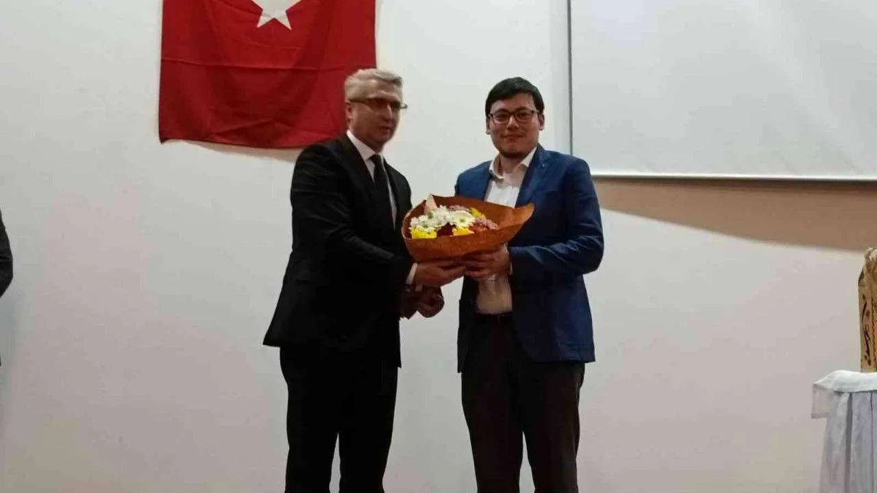 Konferans sonunda İl Kültür ve Turizm Müdürü Mehmet Mazak ve İlçe Milli Eğitim Müdürü Yasar Ciğer, Dr. Eren Yavuz’a teşekkürlerini sundular.