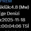 Ege Denizi'nde 4.8 büyüklüğünde deprem