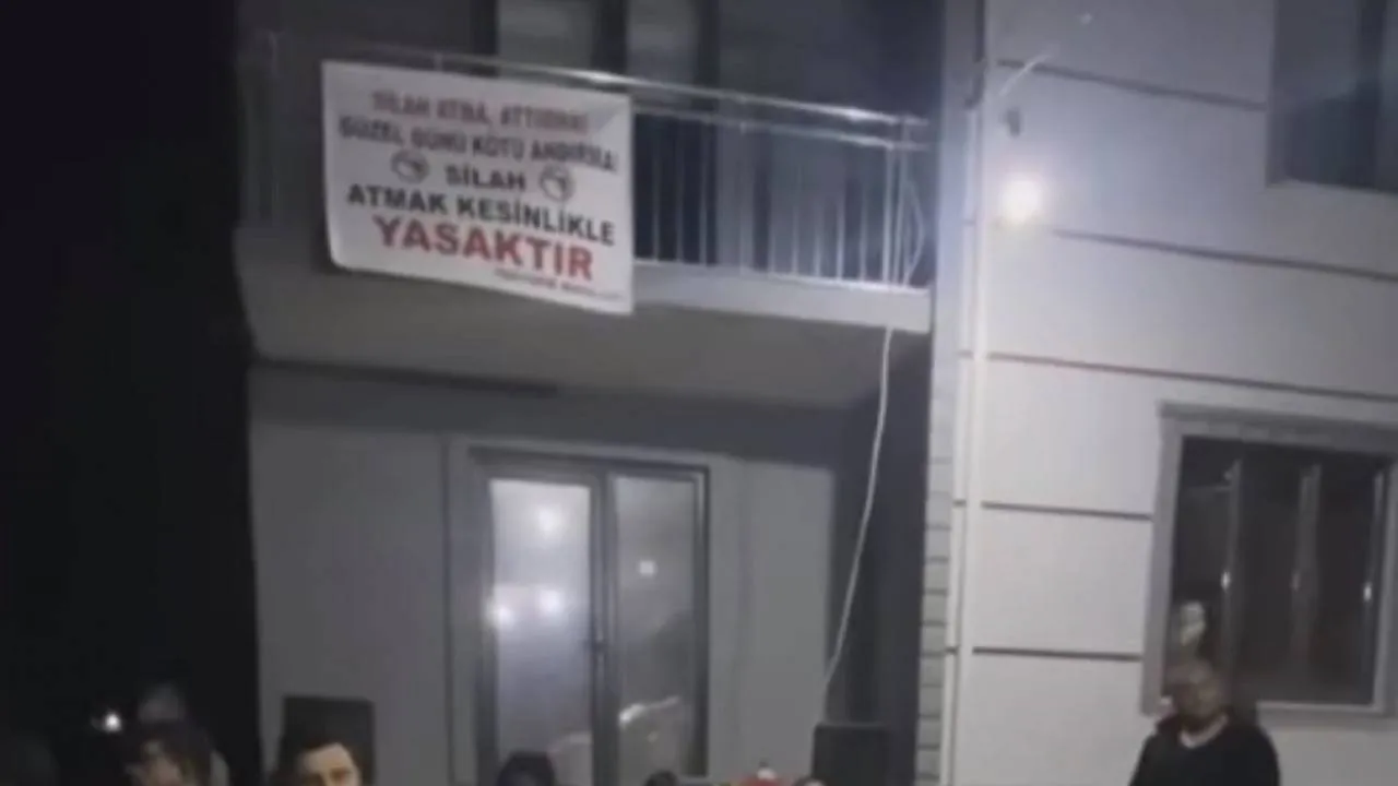 Maganda sosyal medya hesabında, hem uyarının yazıldığı pankartı hem de havaya ateş açtığı anları sosyal medya hesabında paylaştı.
