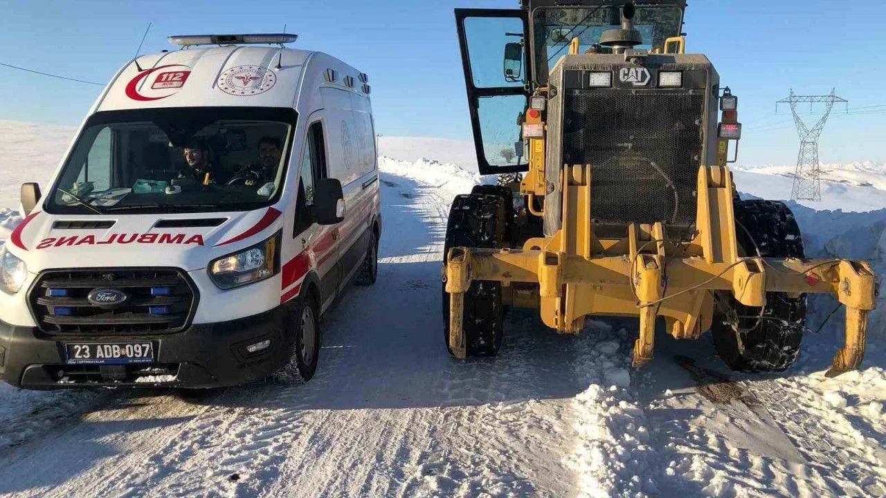 Elazığ'da kar yağışı nedeniyle yolu kapanan köyde mahsur kalan hasta için ekipler seferber oldu. Yol iş makineleriyle yol açıldı ve hasta ambulansla hastaneye yetiştirildi.