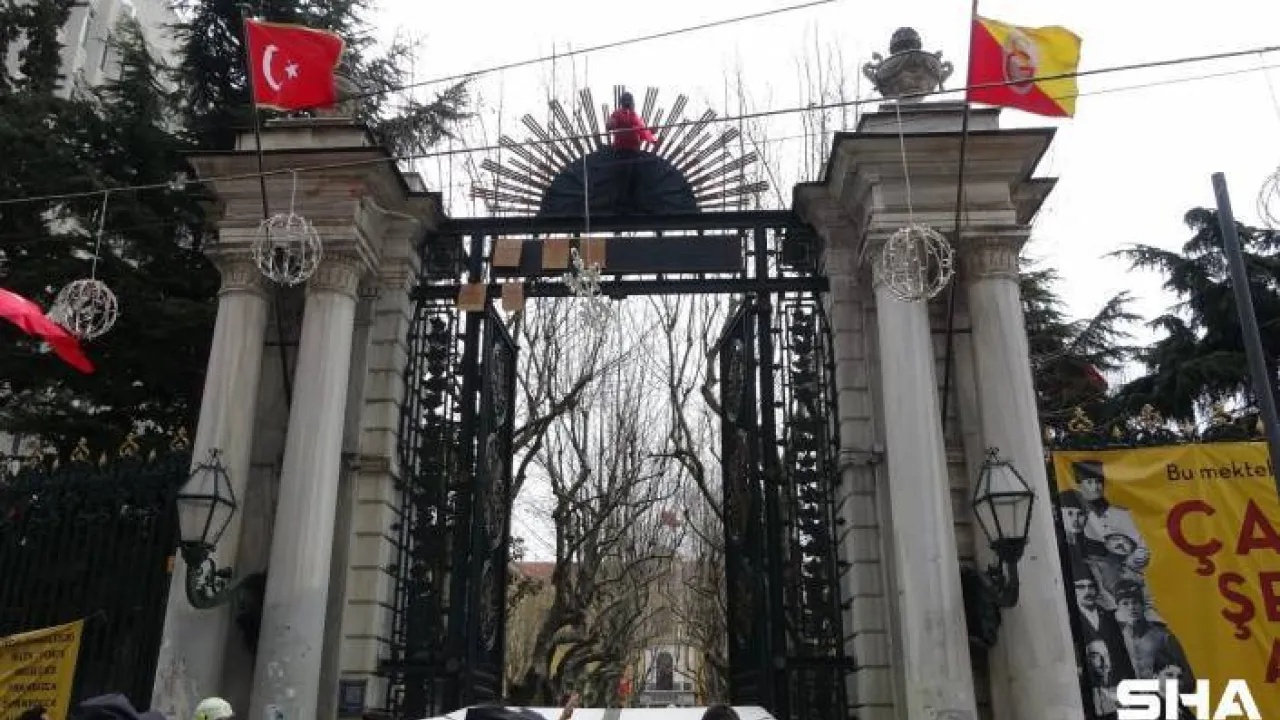 Olay, saat 12.00 sıralarında İstiklal Caddesi Galatasaray Meydanı’nda yaşandı. Galatasaray Lisesinin giriş kapısının tepesine çıkan bir kişi kapıda bulunan Arapça tabelaların üzerine hazırladığı dövizleri koydu ve intihar edeceğini söyledi. Kapının üzerine çıkıp bağırmaya başlayan adamı görenler durumu polise bildirdi. Olay yerine çok sayıda polis, sağlık ve itfaiye ekibi sevk edildi. Galatasaray Lisesinin önüne gelen itfaiye ekipleri atlama ya da düşme ihtimaline karşın hava yastığı açarak önlem aldı. Polis ekipleri çevre güvenliğini sağlarken sağlık ekipleri de hazır bulundu.