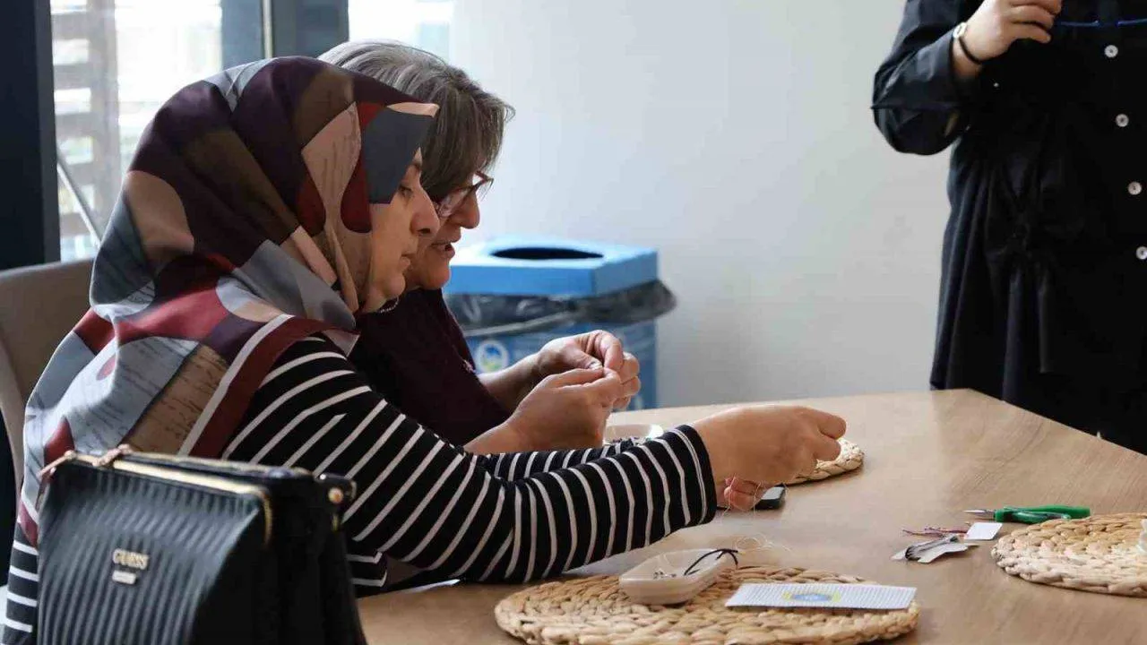 Sakarya Büyükşehir Belediyesi Sosyal Gelişim Merkezi (SGM) Engelsiz Hobi Kursu'nda özel çocukların annelerine 'miyuki' tekniğiyle bileklik yapımı öğretiliyor. El emeği ürünlerin gelirleri ise Filistin halkına gönderiliyor.