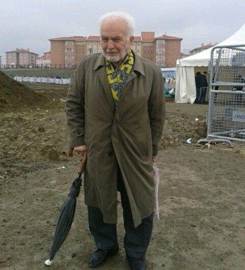 80 yaşındaki Fenerbahçeli, elinde bastonu ve boynunda Fenerbahçe atkısıyla, dizlerini tuta tuta yürümesine rağmen destek için Silivri'ye geldi.