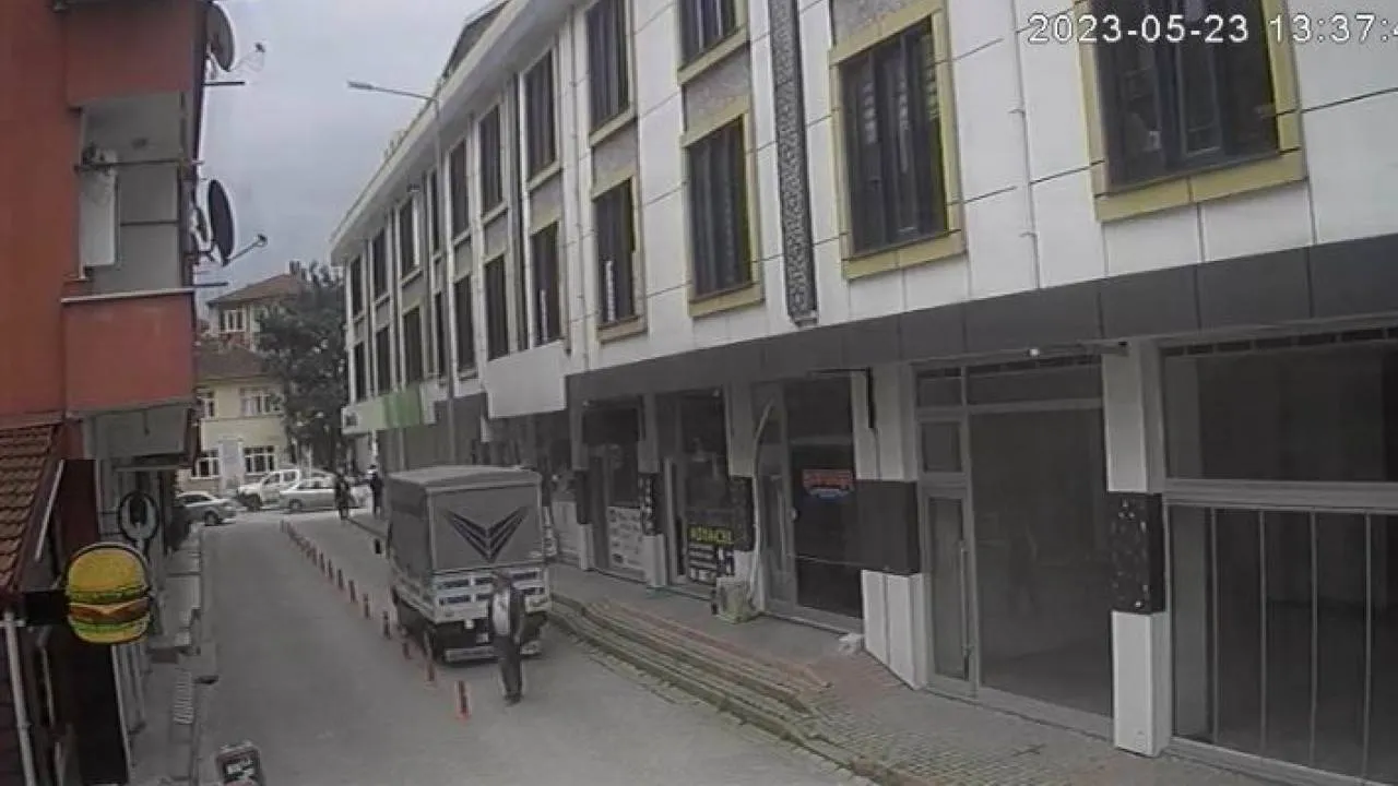 Sakarya'nın Akyazı ilçesinde geri manevra yapan kamyonetin çarptığı emekli öğretmen yaralandı. Kaza anı güvenlik kamerasınca saniye saniye kaydedildi.