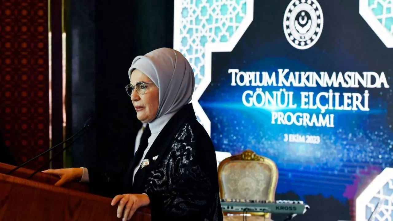 Çocukların ve yaşlıların gönlüne girmenin, hayat yolculuğunda varılabilecek en yüce makam olduğu ifade eden Emine Erdoğan, 11 yıl önce, ’Gönül Elçileri’ hareketini başlattıklarını, kadınların güçlenmesi, yaşlıların kaliteli ömür sürmesi ve engelli bireylerin hayallerine ulaşmasının önündeki engelleri bertaraf etmek için projeler geliştirdiklerini hatırlattı.