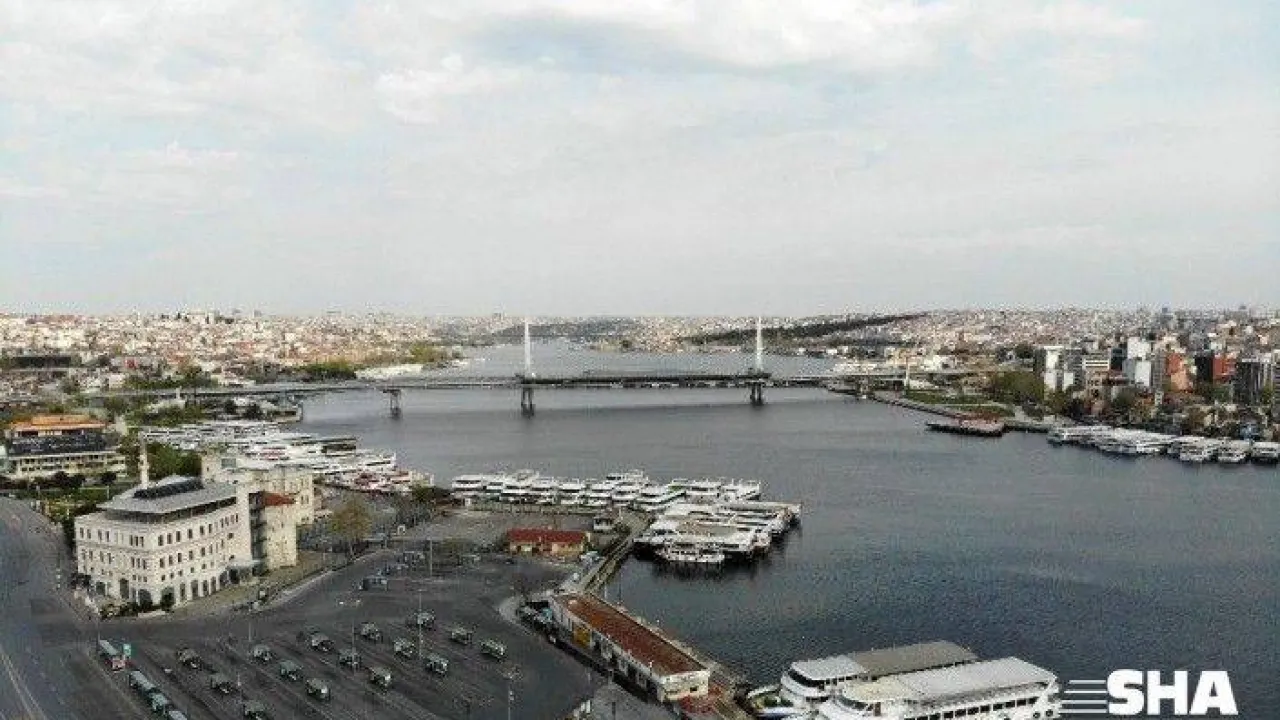 Korona virüse karşı alınan tedbirler kapsamında ilan edilen 4 günlük sokağa çıkma kısıtlamasının son gününde de sessizliğin hakim olduğu Eminönü Meydanı havadan görüntülendi.