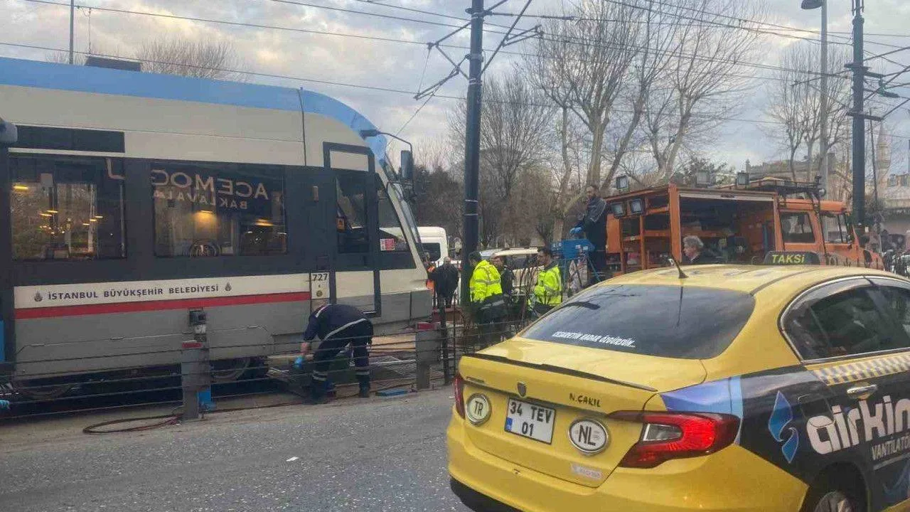 Eminönü-Sirkeci istikametinde seyrederken tramvay tekrar raydan çıktı.
