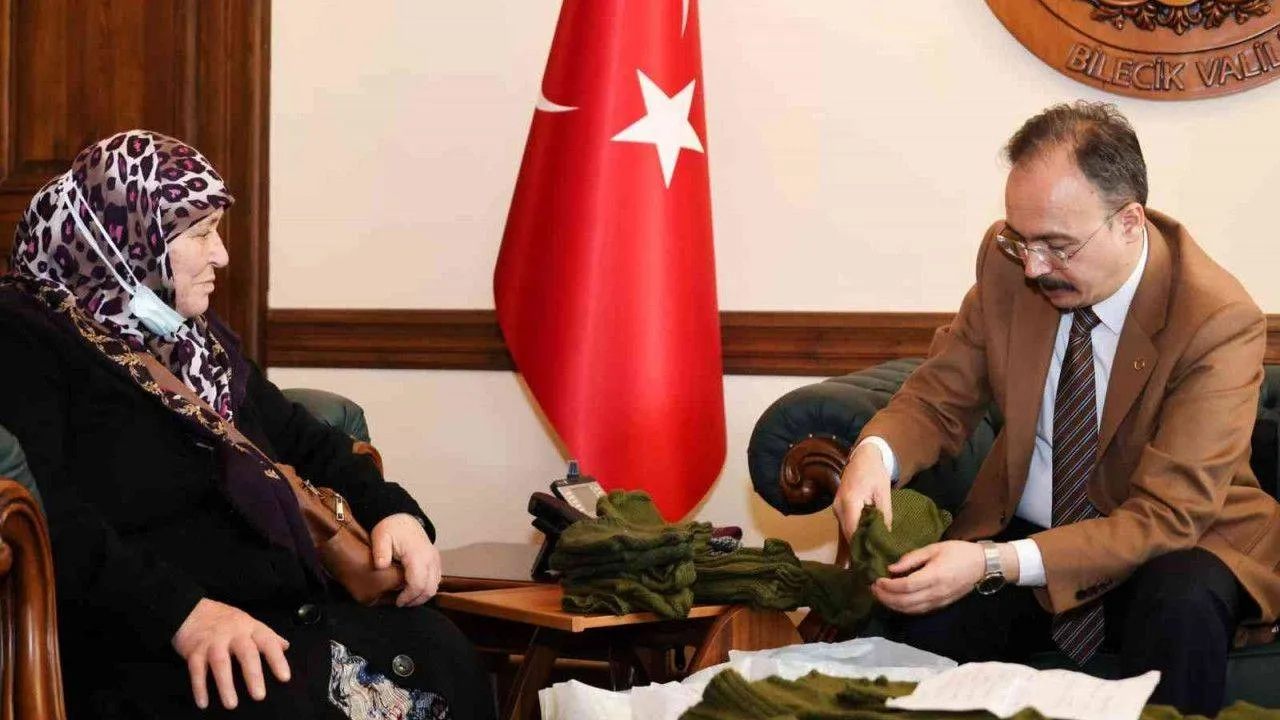 Geçen yıl olduğu gibi bu yıl da askerler için ilerleşim yaşına rağmen 75 çift yün çorap ören Emizade nine çorapları askerlere ulaştırmak için Bilecik Valisi Dr. Kemal Kızılkaya’ya teslim etti. Emizade Yalamacılar’ı ve eşi Kadir Yalamacılar’ı makamında ağırlayan Vali Kızılkaya, içerisindeki vatan sevgisinin herkese örnek gösterilmesi gerektiğini belirterek duyarlılıklarından ötürü teşekkür etti.
