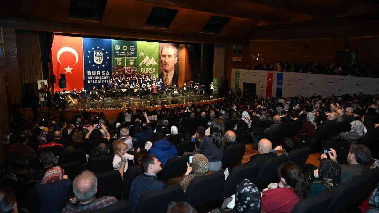 Bursa Kent Konseyi Engelliler Meclisi, 3 Aralık Dünya Engelliler Günü münasebetiyle Atatürk Kongre Kültür Merkezi’nde muhteşem bir konsere imza attı. Büyükşehir Belediyesi’nin de katkılarıyla düzenlenen konserde Bursa Kent Konseyi Engelliler Meclisi’nin gönüllü katılımcıları tarafından oluşturulan Türk Halk Müziği korosunun tüm sanatçıları adeta sahnede devleşti. Ezgilerin engel tanımadığı gecede salon hıncahınç dolarken, Bursa Büyükşehir Belediye Başkanı Alinur Aktaş ve Bursa Kent Konseyi Başkanı Şevket Orhan da bu özel gecede engelli bireyleri yalnız bırakmadı.