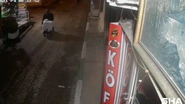 Bursa'da 4 yıl önce engelli bir kişiye İl Emniyet Müdürlüğü tarafından hediye edilen akülü sandalyeyi engelli takliti yaparak çalan hırsız kameralara yakalandı.