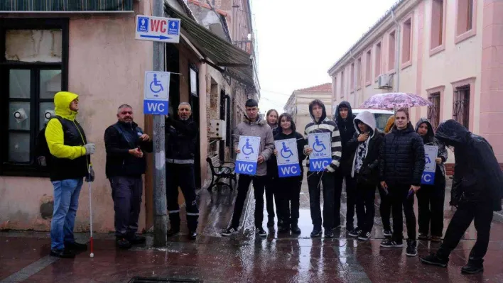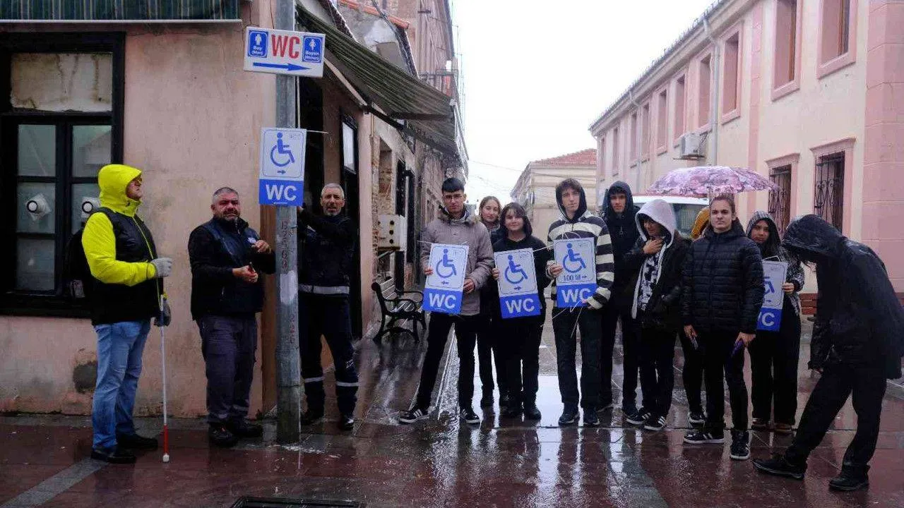 Ayvalık’ta yaşayan engellilerin mevcut engelli tuvaletlerine ulaşabilmeleri için, engelli tuvaletlerin bulunduğu yerleri gösteren yön levhalarını ilçenin dört bir yanına asan öğrencilerin duyarlılığı takdirle karşılandı.