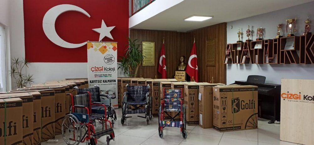Silivri'de faaliyet gösteren özel eğitim kurumlarından Çizgi Koleji Okul Aile Birliği, 3 Aralık Dünya Engelliler Günü dolayısıyla ihtiyaç sahibi engellilere dağıtılmak üzere Silivri Belediyesi Sosyal Yardım İşleri Müdürlüğüne 30 adet tekerlekli sandalye bağışladı.