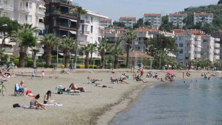 Balıkesir’in Erdek ilçesinde hava sıcaklıklarının artmasıyla birlikte Erdek halkı ve tatilciler denize akın etti.