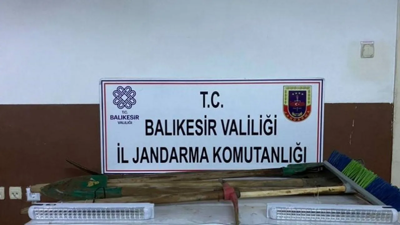 Balıkesir İl Jandarma Komutanlığınca, kültür ve tabiat varlıkları kaçakçılığına yönelik yapılan istihbarı çalışmalar neticesinde, Erdek ilçesinde izinsiz kazı yapılacağına yönelik bilgi edilmesi üzerine bölgede yapılan araştırma ve teknik takip sonucu 02 Ocak 2024 tarihinde icra edilen operasyonel faaliyette; 3 adet kürek, 2 adet fener, 1 adet kazma ve 1 adet tel fırçası ele geçirildi. Olaya karışan 5 şüpheli suçüstü yakalanarak gözaltına alındı.