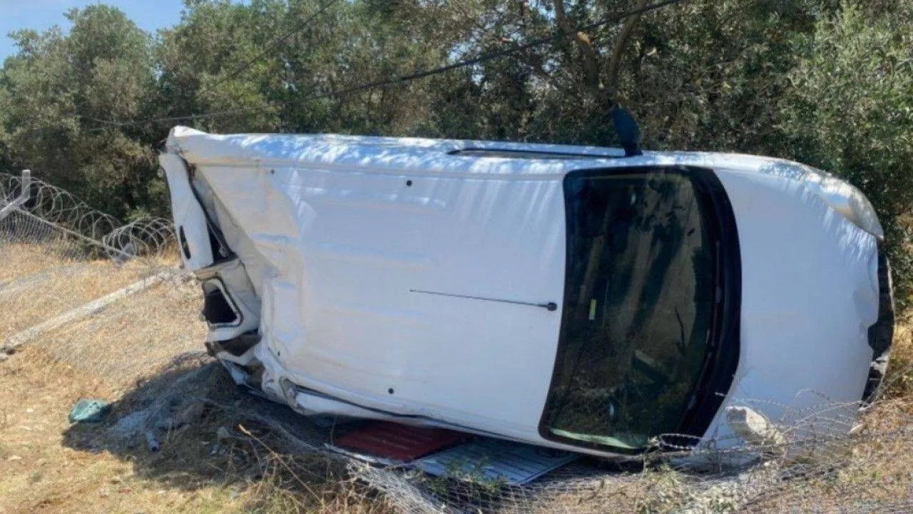 Balıkesir'in Erdek ilçesinde sürücünün kontrolünden çıkan otomobil, yol kenarındaki koruma demirlerine çarpıktan sonra takla atarak ters döndü.