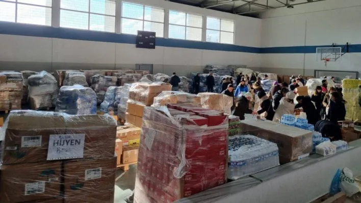 Ergene İlçe Milli Eğitim Müdürlüğüne bağlı okullarda görev yapan gönüllü yönetici, öğretmen ve memurlar ile velilerin de destekleriyle, Yıldırım Beyazıt Han Ortaokulu Spor Salonunda yardım için toplanan gıda, hijyen, battaniye ve barınma malzemeleri olarak ayrılıp paketlendikten sonra AFAD koordinesinde bölgeye sevk edilmek üzere tırlara yükleniyor.