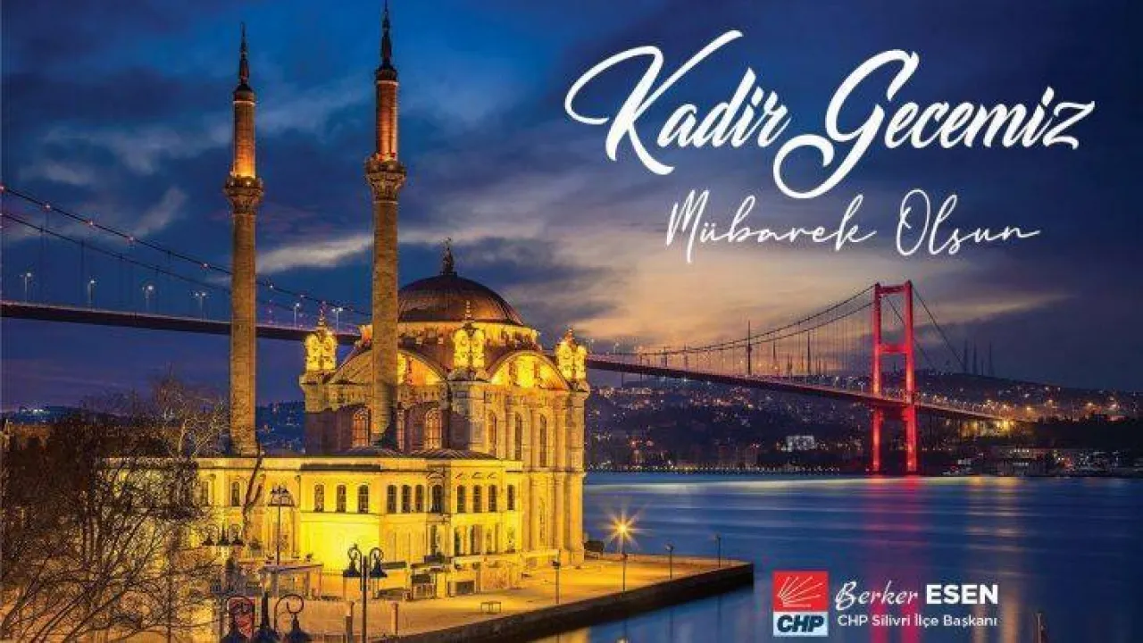 CHP Silivri İlçe Başkanı Berker Esen, Kadir gecesi münasebetiyle bir kutlama mesajı yayınladı. Esen, mesajında 'vicdanlardaki merhametin çoğalmasını diliyor, coğrafyamızdaki acıların bir an önce son bulmasını umarak, tüm İslam aleminin Kadir Gecesi'ni kutluyorum' dedi.