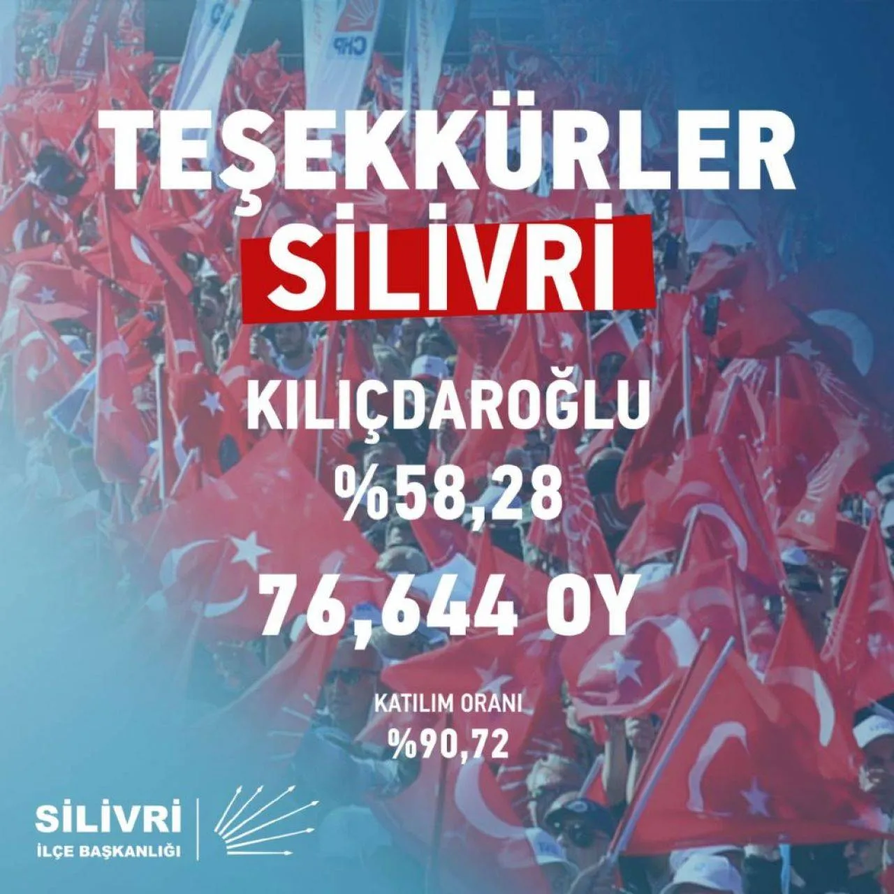 13.Cumhurbaşkanı Adayımız ve Genel Başkanımız Sayın Kemal Kılıçdaroğlu'na oy veren 76.644 hemşerimize yüreklerinde büyüttükleri umut için teşekkürlerimi sunuyorum. Bu daha başlangıç mücadeleye devam!”