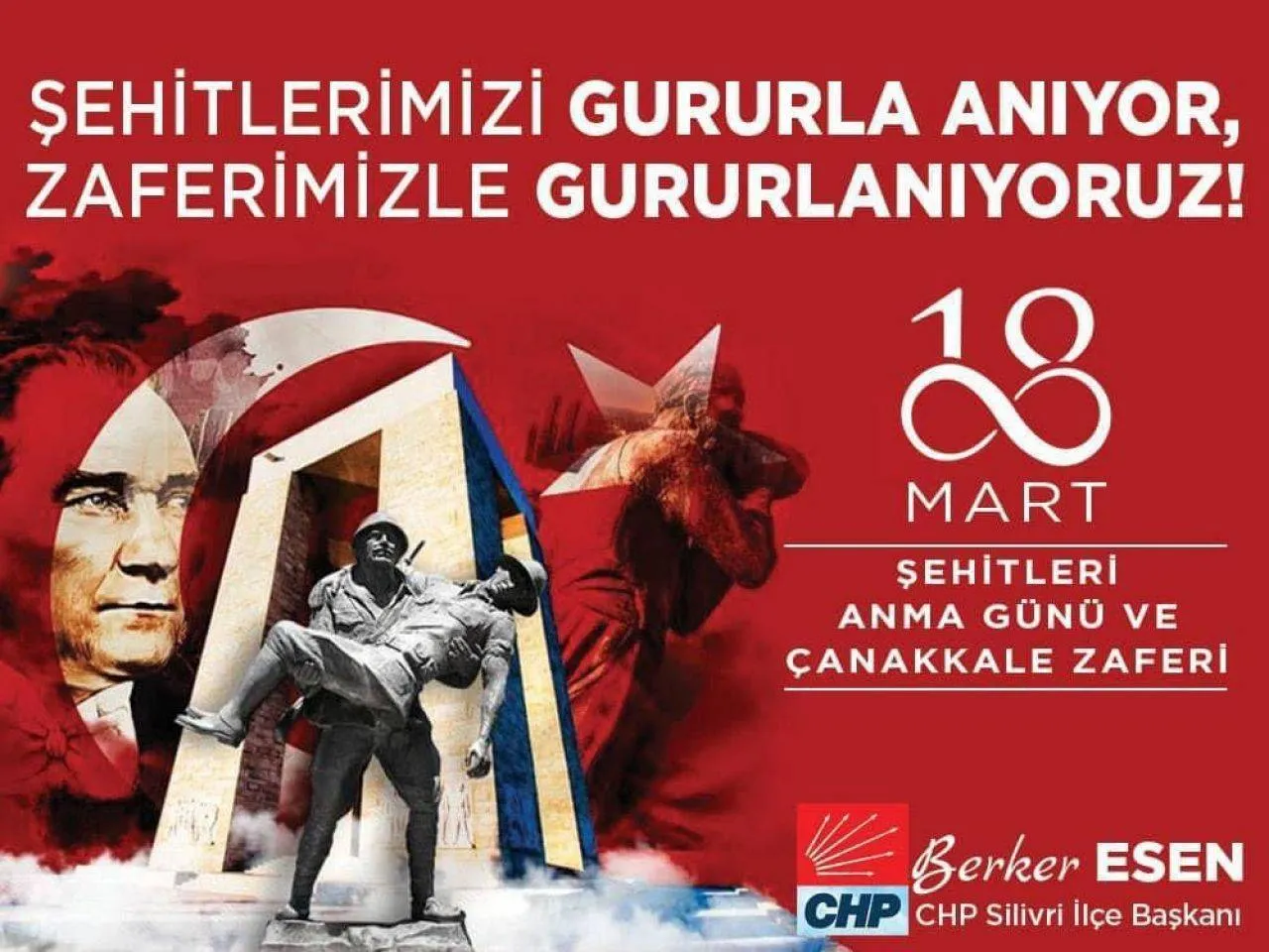 CHP Silivri İlçe Başkanı Berker Esen'in 18 Mart Çanakkale Zaferi dolayısı ile yayınladığı mesajda "Çanakkale Zaferi Türk ve dünya tarihi için bir dönüm noktası, kahramanlık ve fedakârlığın doruk noktaya ulaştığı, Türk Milleti’nin verdiği bir onur mücadelesidir. Her şeyden önemlisi bu zafer, Kurtuluş Savaşı ateşinin yüreklerde yakılıp, milletçe yeniden doğuşun başlangıcı ve sömürülen tüm mazlum milletler için işaret fişeği olmuştur.
