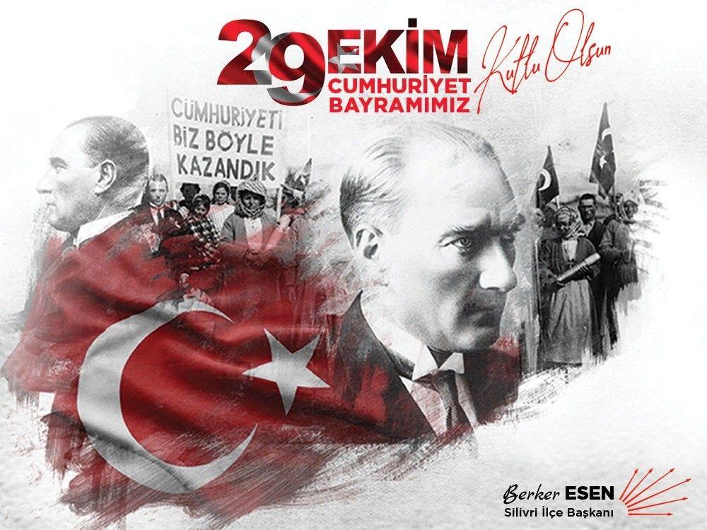 Cumhuriyet Halk Partisi Silivri İlçe Başkanı Berker Esen, 29 Ekim Cumhuriyet Bayramının 98. yıl dönümü dolayısıyla bir mesaj yayımladı.