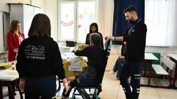 Esenyurt Belediyesi, ilçedeki engelli ve 65 yaş ve üzeri hasta vatandaşların oy kullanacakları okullara ulaşımını sağladı. Ambulans ve asansörlü engelli araçlarıyla sandık başına getirilen vatandaşlar, oylarını rahatlıkla kullandı.