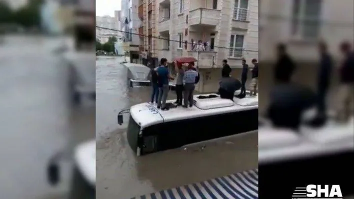 Meteoroloji Genel Müdürlüğü’nün şiddetli yağmur konusunda dün uyardığı İstanbul’da sağanak yağmur etkili oldu. Esenyurt’ta etkili olan şiddetli yağmur taşkınlara neden oldu. İlçede bir su kanalının taşması sonucu birçok ev su altında kadı. Bir sokak üzerinde ise midibüsün içerisinde bulunanlar mahsur kaldı. Yolcular, sel sularının midibüsün yarısına kadar çıkması üzerine midibüsün üstünde bulunan pencereden yukarı çıktı. Mahsur kalan yaklaşık 10 kişi kurtarılmayı bekliyor.