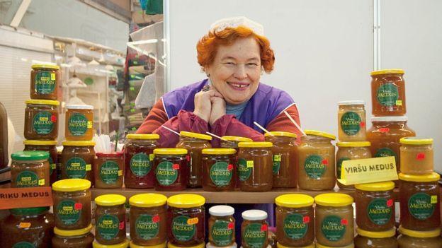 Letonya'da bal satan bir kadın.Dünya Banka'sına göre Letonya,kadın ve erkeklere eşit ekonomik haklar veren 6 ülkeden biri.