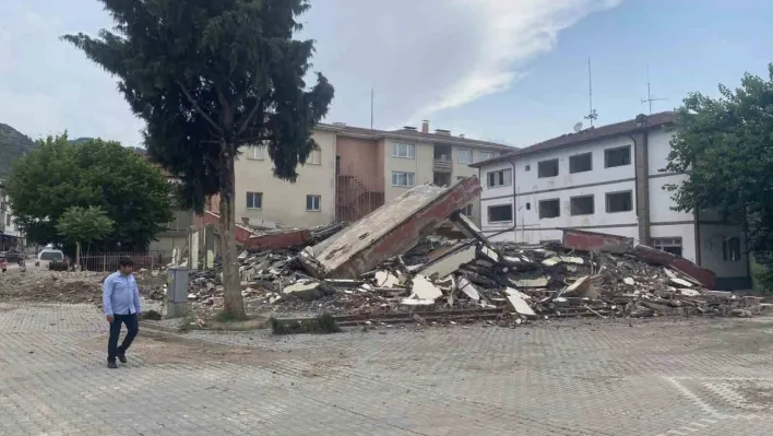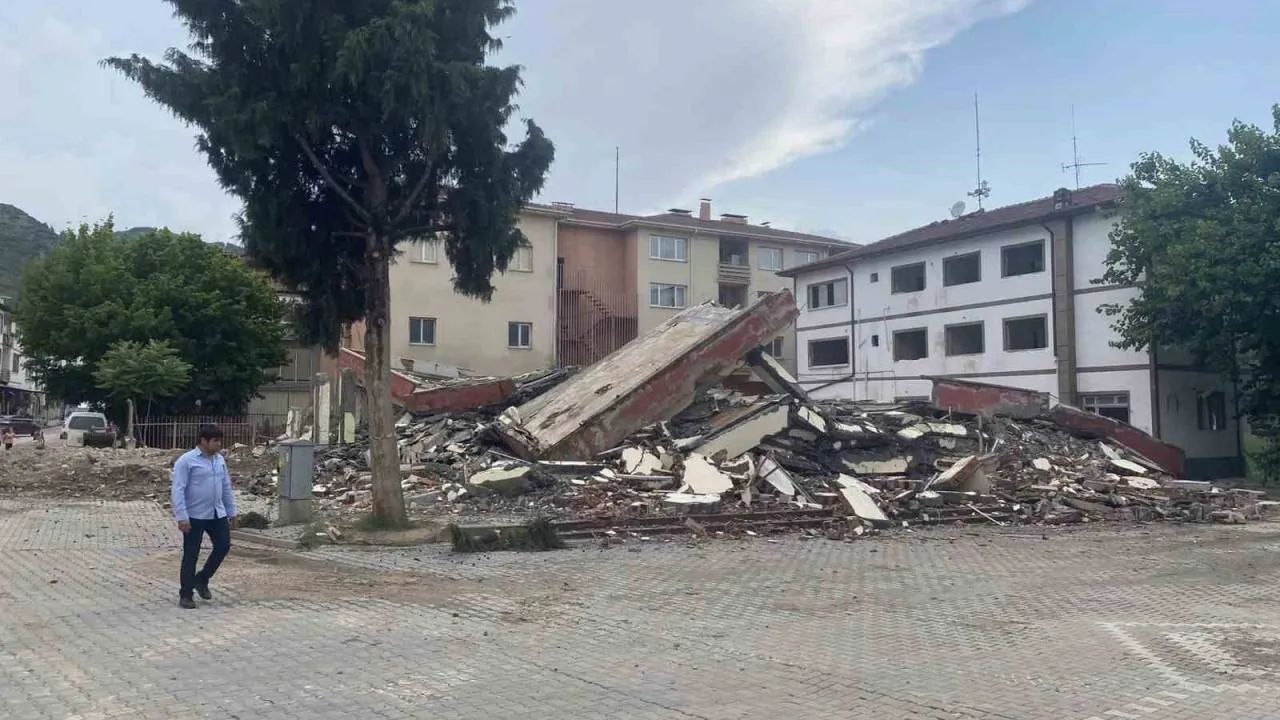 Osmaneli Belediyesi, deprem riski nedeniyle yıkım kararı olan belediye binasının yıkımını kendi ekibi ve iş makineleriyle yaptı.