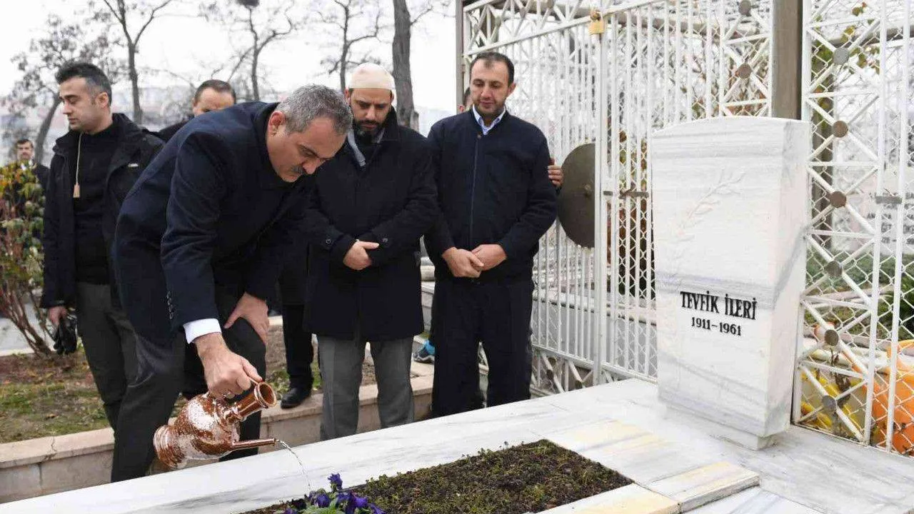 Milli Eğitim Bakanı Mahmut Özer ile beraberindekiler, eski Milli Eğitim Bakanı Ahmet Tevfik İleri’yi vefatının 61. yılın dolayısıyla kabri başında andı.