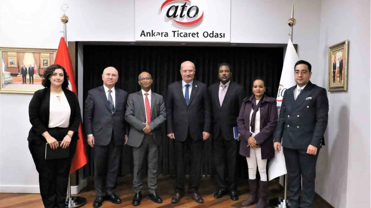 Etiyopya Ankara Büyükelçisi Adem Mohamed Mahmud ile ATO Yönetim Kurulu Başkanı Gürsel Baran’ı makamında ziyaret etti. İkili, Türkiye ile Etiyopya arasındaki ticari ilişkilerin geliştirilmesine ilişkin görüşme yaptı. ATO Yönetim Kurulu Başkanı Gürsel Baran, Türkiye ile Etiyopya arasındaki dış ticaret hacminin 400 milyon doların altında olduğunu belirterek, “Cumhurbaşkanımız Recep Tayyip Erdoğan’ın Etiyopya’da gerçekleştirdiği resmi ziyaretlerde üzerinde uzlaşmaya varılan, iki ülke arasındaki ticaret hacmini 1 milyar dolar seviyesine çıkarma hedefi için Ankara Ticaret Odası olarak çalışmaya hazırız” dedi.