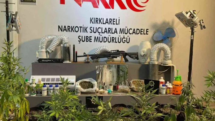 Kırklareli'nin Lüleburgaz ilçesinde polis ekiplerinin düzenlediği operasyonda, 2 kilo 200 gram esrar, 25 saksıda ekili Hint keneviri, av tüfeği, silaha ait 2 şarjör ve 6 fişek ele geçirildi.