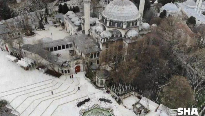 Yeni tip korona virüs salgını ile mücadele kapsamında 16 Mart tarihinde camilerde Cuma namazı kılınmasının yasaklanmasının ardından camilerdeki sessizlik devam ediyor. Yasağın 3’üncü haftasında Cuma namazı saatinde havadan çekilen görüntülerde Eyüp Sultan Camii’nin avlusunun kuşlara kaldığı görüldü.