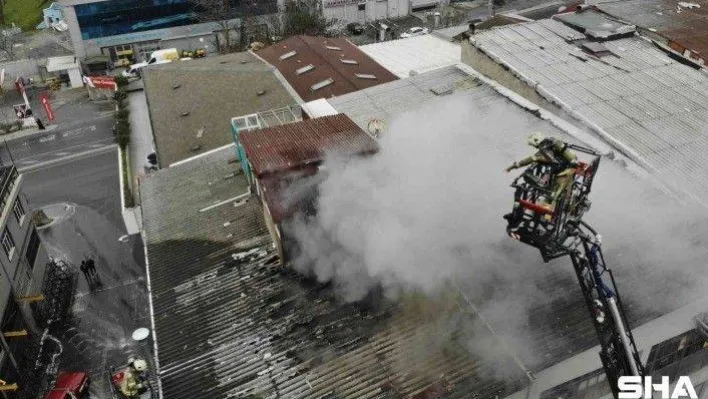 Eyüpsultan’da mobilya imalatı yapan bir iş yerinin çatısında çıkan yangın itfaiye ekipleri tarafından söndürüldü. Dumanların yükseldiği iş yeri, dron ile havadan görüntülendi.
